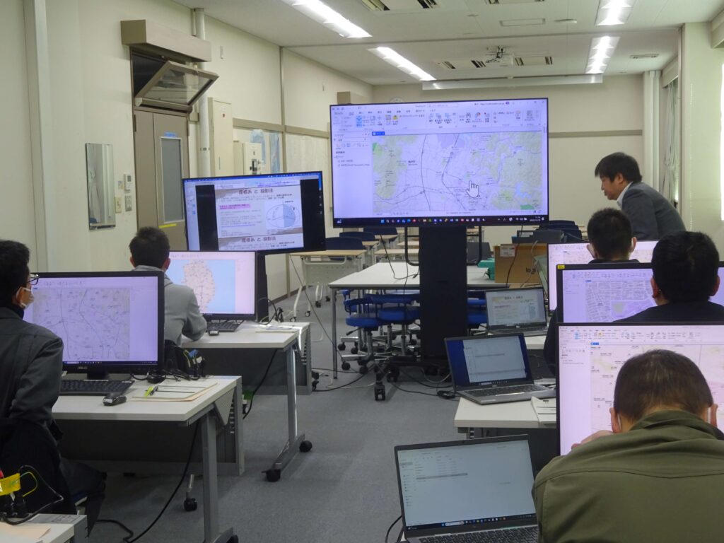 今回の研修には計6名が受講しましたが、土砂災害や火災などの防災業務、学校教育、土木事務所など受講者それぞれの業務でGISを活用する初歩の機会になったのではないかと考えます。